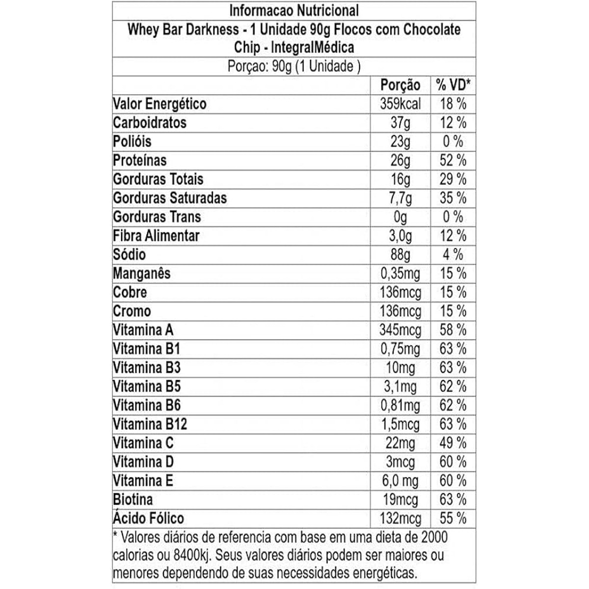 DARK BAR 8X90G FLOCOS COM CHOCOLATE CHIP