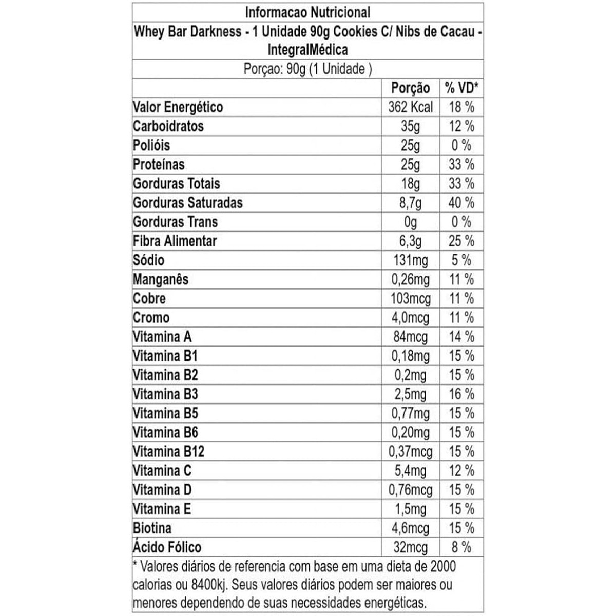 DARK BAR 8X90G COOKIES AND CREAM/NIBS CA